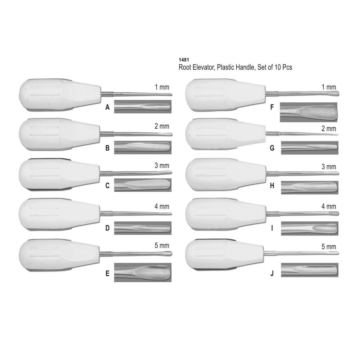Root Elevator, Plastic Handle, Set of 10 Pcs